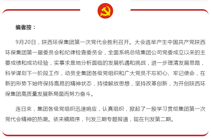 9月22日,秦枫公司召开专题会议认真传达学习贯彻集团第一次党代会精神,并对学习、宣传、贯彻党代会精神作出部署,掀起了认真学习贯彻集团第一次党代会精神的热潮。