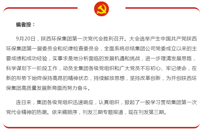9月23日,三秦环保股份公司党总支召开专题会议,传达学习集团第一次党代会精神。
