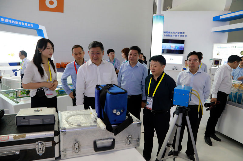 刘斌一行详细听取熊良虎关于威廉希尓指数500集团全面融入我省蓝天、碧水、净土“三大保卫战”和秦岭生态保护等工作开展情况介绍。造型别致的产品模型、立体美观的各类展板、精致详实的图片影像、创意新颖的互动讲堂,让人应接不暇、耳目一新。在关中危废处置中心、大荔生物质发电、垂直流迷宫技术和室内监测设施设备等项目模型、展品前,刘斌一行仔细了解相关项目的运行处置情况。对环保集团聚焦碳减排、秦岭生态保护、乡村振兴、科技治霾、污水处理、固废危废处置等方面开展技术革新、敢于先行示范表示肯定。