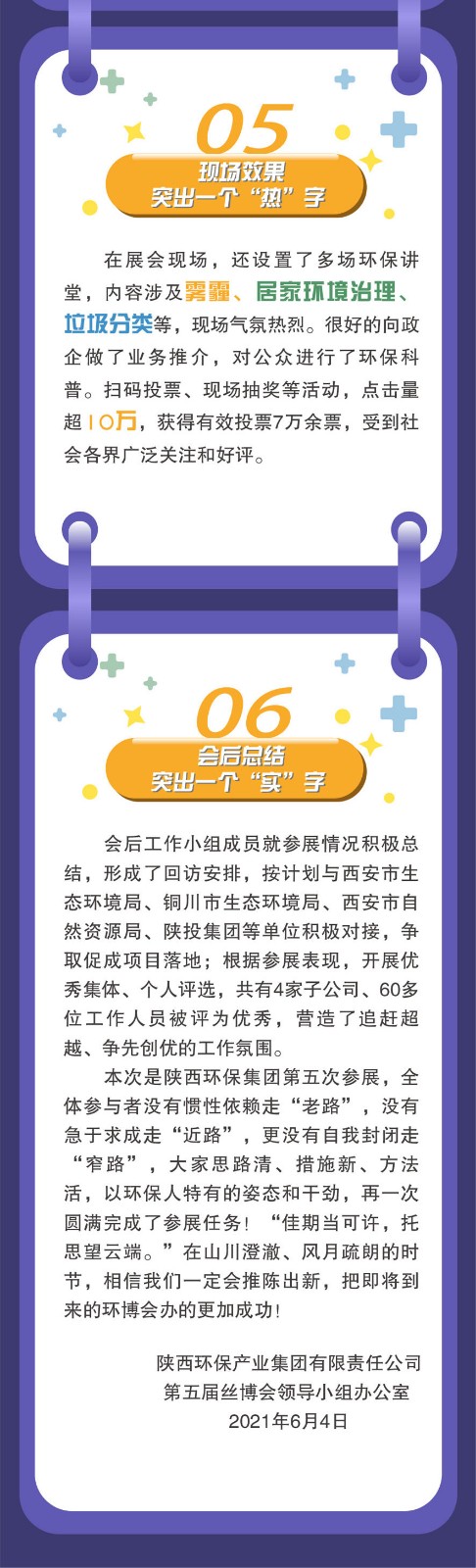顾峰在讲话中对本次展会的承办单位和辛勤付出的工作人员表示衷心感谢,对获奖集团和个人表示祝贺。他指出,本次丝博会集团围绕近年来主要工作成就及“十四五”战略规划等重点内容,以简约、绿色、节能的环保理念,充分展示了集团公司在前沿技术、高端装备、重点工程等领域取得的一批重大成果,再一次提升了集团公司品牌影响力,书写了集团发展史上的又一页精彩篇章。他希望受到表彰的单位和个人,以引领全省环保产业发展为己任,倍加珍惜荣誉,切实担当使命,为把集团打造成为中国环保产业领军企业不懈努力,为促进区域生态文明建设作出更大贡献。