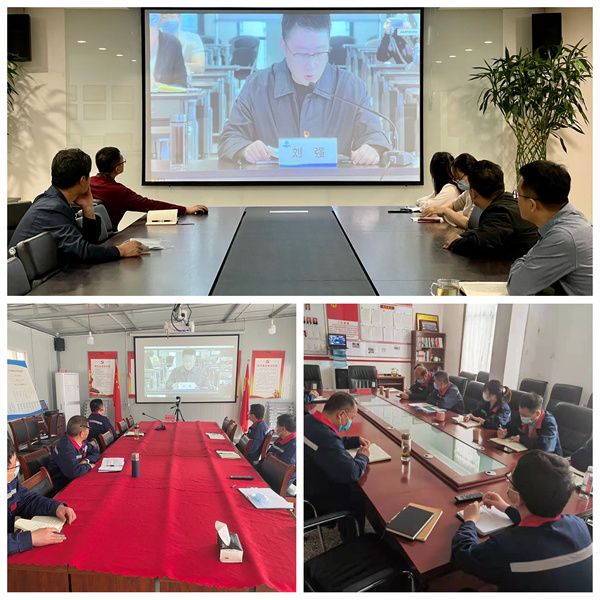 3月16日,集团公司副总经理刘强为秦邦公司、鼎丰矿业公司、秦枫公司传达学习习近平总书记重要讲话、全国两会精神及近期疫情防控有关会议精神。刘强指出,要系统深入学习、深刻领会习近平总书记重要讲话精神,充分认识中国特色社会主义制度优势,坚持增强“四个意识”、坚定“四个自信”、做到“两个维护”,完整准确全面贯彻新发展理念,努力构建新发展格局,推动集团高质量发展取得新突破。刘强要求,要提高思想认识,保持高度警惕,清醒认识当前疫情防控严峻形势,从严从紧抓好各项防控工作,坚决守住疫情防控底线。要层层夯实责任,扎实做好基础工作,进一步加大防控力度,严格遵守“有事报告,无事报平安,紧急情况随时上报”的工作要求,同时落实好办公生产区域消杀、扫码、测温等常态化防控措施。集团公司企业管理部负责同志等参加。(牛欣睿)李钊传达会议精神 3月16日,集团公司副总经理李钊通过视频会议的形式为油气公司、智信公司传达习近平总书记在全国两会上的重要讲话和全国两会精神,安排部署疫情防控及稳增长工作。李钊指出,习近平总书记在全国两会上的重要讲话,蕴含深意、富有新意,具有很强的政治性、思想性、指导性、针对性,为集团做好各项工作指明了前进方向。通过学习习近平总书记重要讲话精神,深刻理解把握“五个必由之路”的重要认识,深刻理解把握我国发展具有的“五个战略性有利条件”,结合自身发展,锐意进取,开拓创新,推动集团公司高质量发展。李钊要求,一是要织密扎牢疫情防控网,落实常态化疫情防控举措。近期疫情防控形势严峻。各单位要切实把思想和行动统一到中省关于做好疫情防控工作的具体要求上来,严格落实集团公司关于做好疫情防控的相关举措。二是要强化安全环保责任落实,筑牢安全环保管理基础。要坚决克服麻痹思想,突出抓好安全环保责任体系建设,理清责任链条,拧紧责任螺丝,切实增强思想自觉和行动自觉。三是要全力推进项目建设,多措并举稳定生产运营。各单位要围绕集团公司下达的工作任务目标,尤其要重点关注投资进度,快速做好任务计划分解,有针对性地研究解决措施和办法,坚决做到疫情防控与生产经营两手抓、两不误,确保企业发展平稳推进。集团公司安全环保部主要负责同志参加。(武白钰)