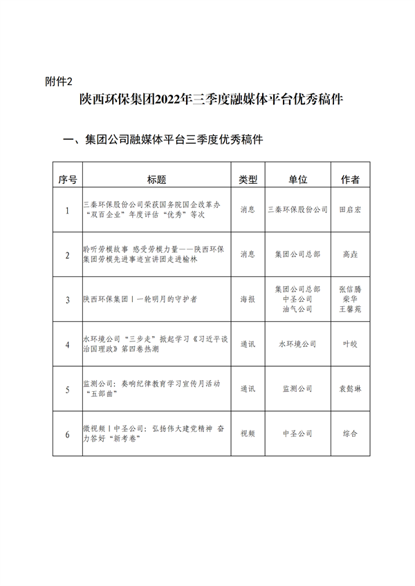 三季度,集团融媒体平台紧紧围绕喜迎党的二十大、重点项目建设等重点工作进行宣传报道,开展的“我们退伍不退色”主题稿件征集活动被“学习强国”平台采用,取得较好效果。三季度,融媒体平台共计刊发稿件297篇。总体来看,各单位对信息工作重视程度有所提升,但仍有部分单位对企业亮点特色工作、经验成效等方面挖掘不深,信息质量不高。其中,水环境公司、中圣公司等单位能够坚持总结工作亮点、经验成效,按期高质量报送稿件,较好地发挥了表率带头作用。但仍有秦枫公司、油气公司等单位对新闻稿件报送工作认识不足、重视不够,未按照集团要求投稿且质量较差。个别单位报送的信息抓不住主题和重点,信息内容单一、表述不规范,大部分信息为简单的会议总结,缺乏加工提炼,应付交差的问题较为突出。