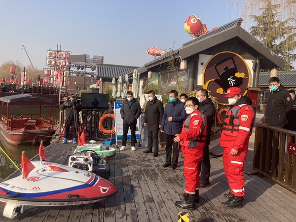 大唐芙蓉园于今年初举办“2023曲江上元烟火晚会”,虎鲨无人船团队配合曲江新区消防救援大队承担安全保障工作。“曙光”系列水下救援无人船执行参会人员遗失物品的水下搜寻任务,快速探寻并成功打捞落水物品,获得失主、活动嘉宾及曲江新区消防救援大队的一致好评。此外,无人船还参与了河南7·20洪灾搜救行动、西安3岁小孩下水道搜救行动、西安蓝田汤峪水库搜救行动等一系列搜救行动,在水域应急救援领域展现出不一般的实力。