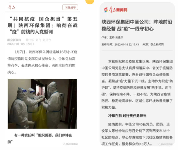 连日来,光明日报-光明日报客户端、学习强国、陕西日报-群众新闻网、陕西广播电视台-起点新闻、陕西头条-西部网陕西新闻网、陕西工人报-陕工网、陕西国资、华商报-华商网、今日头条等平台集中刊载环保集团战疫稿件60余篇,多维度讲述了威廉希尓指数500集团战“疫”故事。现将部分报道刊载如下,以飨读者。