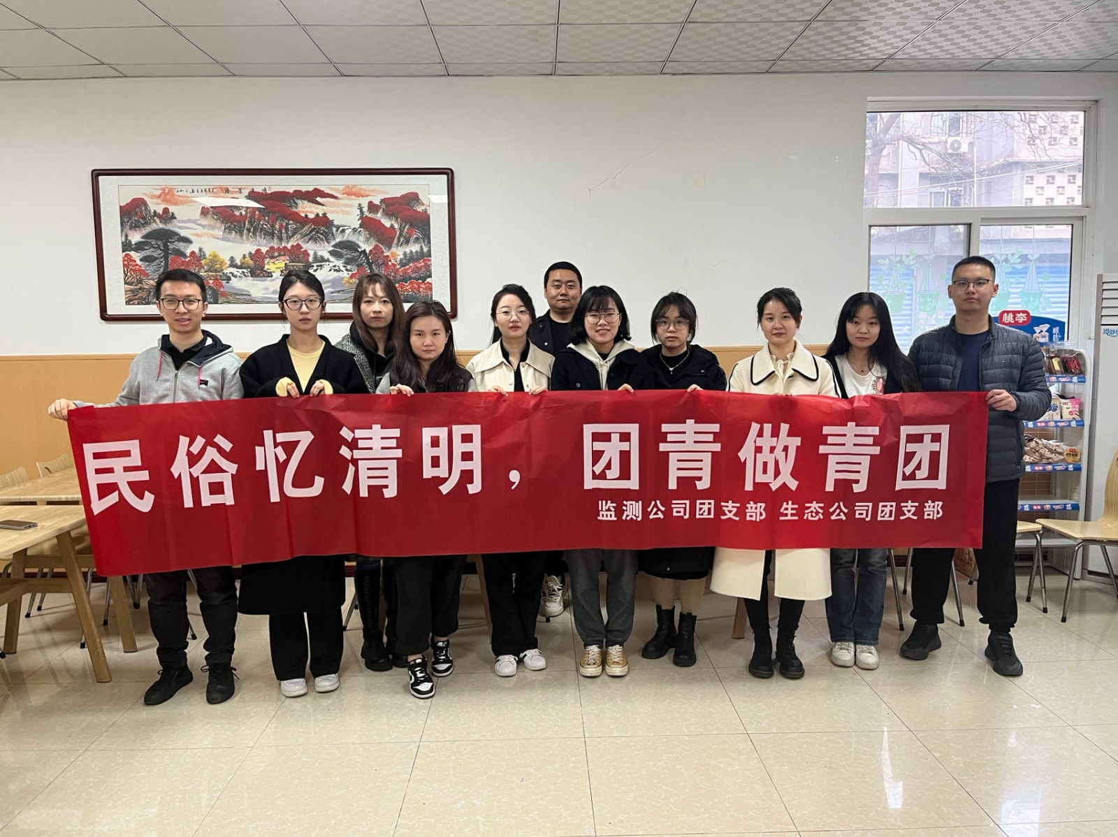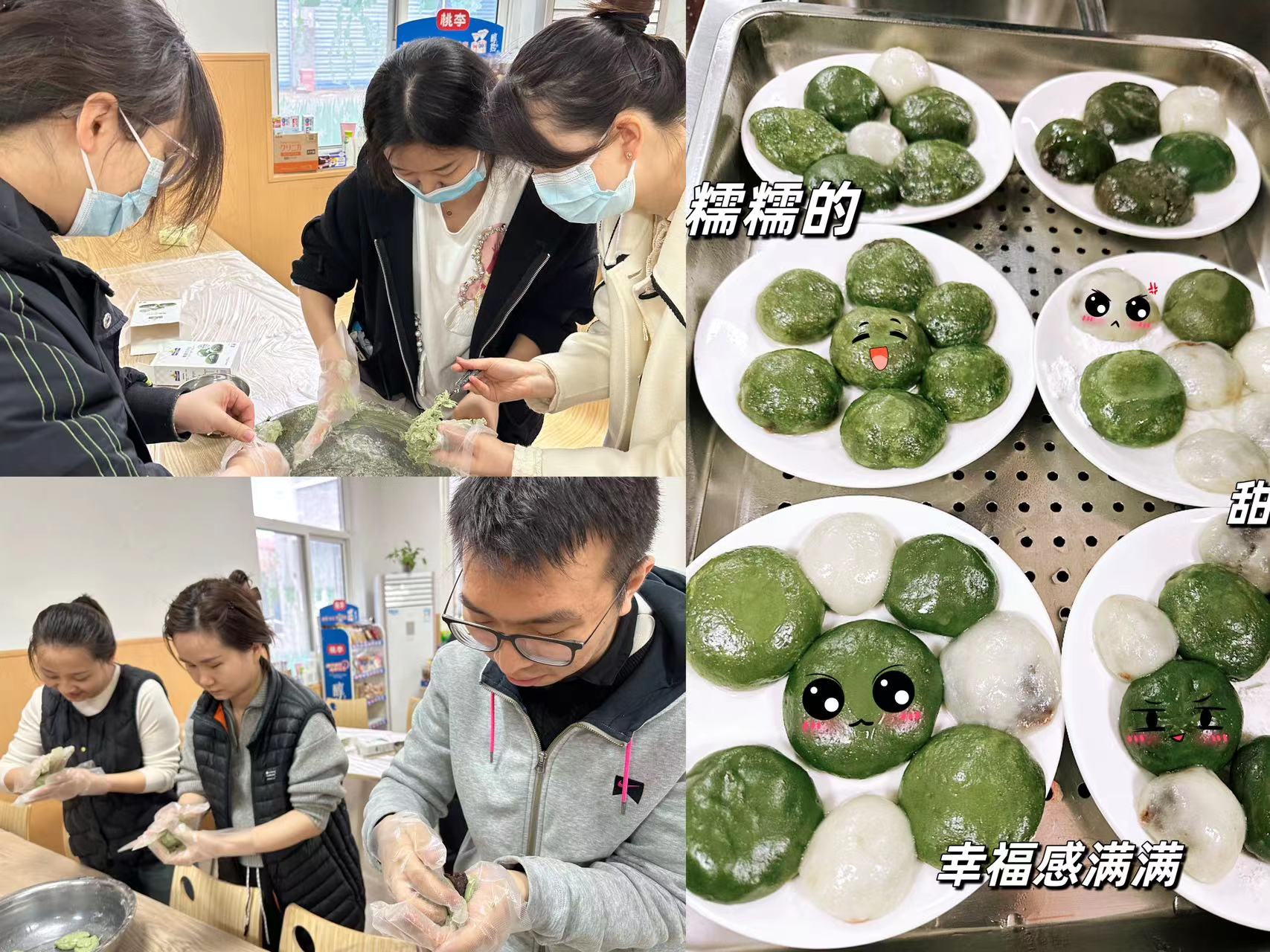 清明节前,生态公司团支部与监测公司团支部联合开展了“民俗忆清明,团青做青团”主题团日活动。在简单了解清明节的由来、习俗、饮食文化等相关知识以及青团的制作方法后,团员青年们挽起袖子、戴上手套,开始大展身手。将青团预拌粉放入盆中,倒入开水搅拌均匀并揉成光滑面团,又将面团分成几等份,压制成薄皮,包入红豆沙、咸蛋黄等不同馅料,合口收紧,一个个圆润可爱、鲜翠欲滴,象征着美好寓意的青团就此诞生。(郑戴戈 刘竞雯)