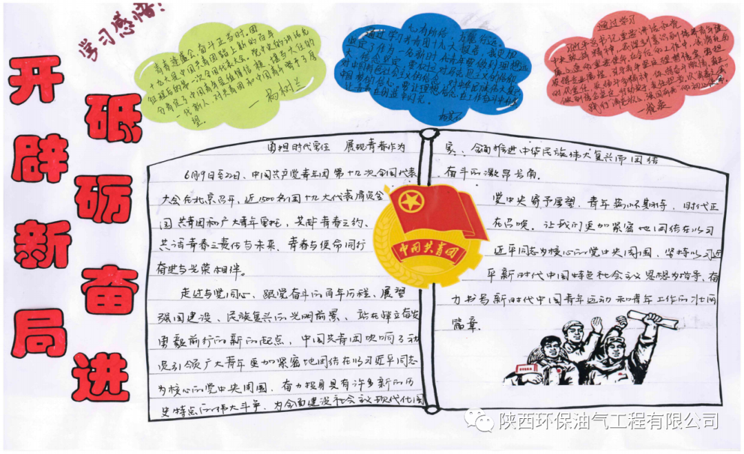 为深入学习宣传贯彻习近平总书记在同团中央新一届领导班子集体谈话时的重要讲话精神,深刻领会党中央致词精神,全面落实团十九大各项部署,按照集团团委工作安排,油气公司团总支开展“手账绘初心”主题活动,展示团员们的青春风采,开辟青年学习的“新阵地”。(赵丹)