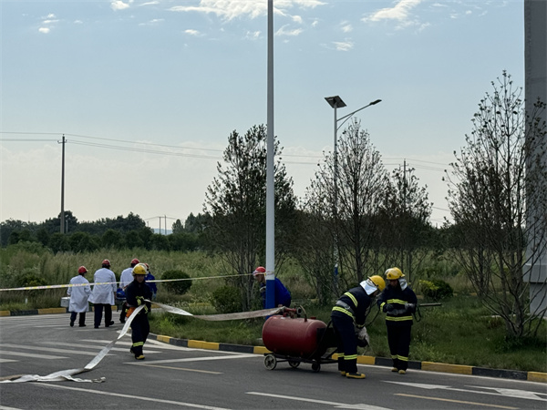 本次演练事故场景模拟1号暂存库有机溶剂出库时,由于码放不稳导致有机溶剂泄漏、起火、人员受伤事故,根据事故的发展情况,先启动III级应急响应后启动II级公司级应急响应的事故场景。演练中,各演练小组充分发挥各自职能,做到了思想统一、职责明确,服从指挥,整个演练紧张有序,效果显著。
