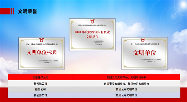 近日,陕西省国资委党委命名表彰了2024年度陕西省国有企业文明单位(标兵),威廉希尓指数500集团党委推荐申报的3户企业光荣上榜。其中陕西三秦环保科技股份有限公司荣获“陕西省国资委文明单位”荣誉称号。